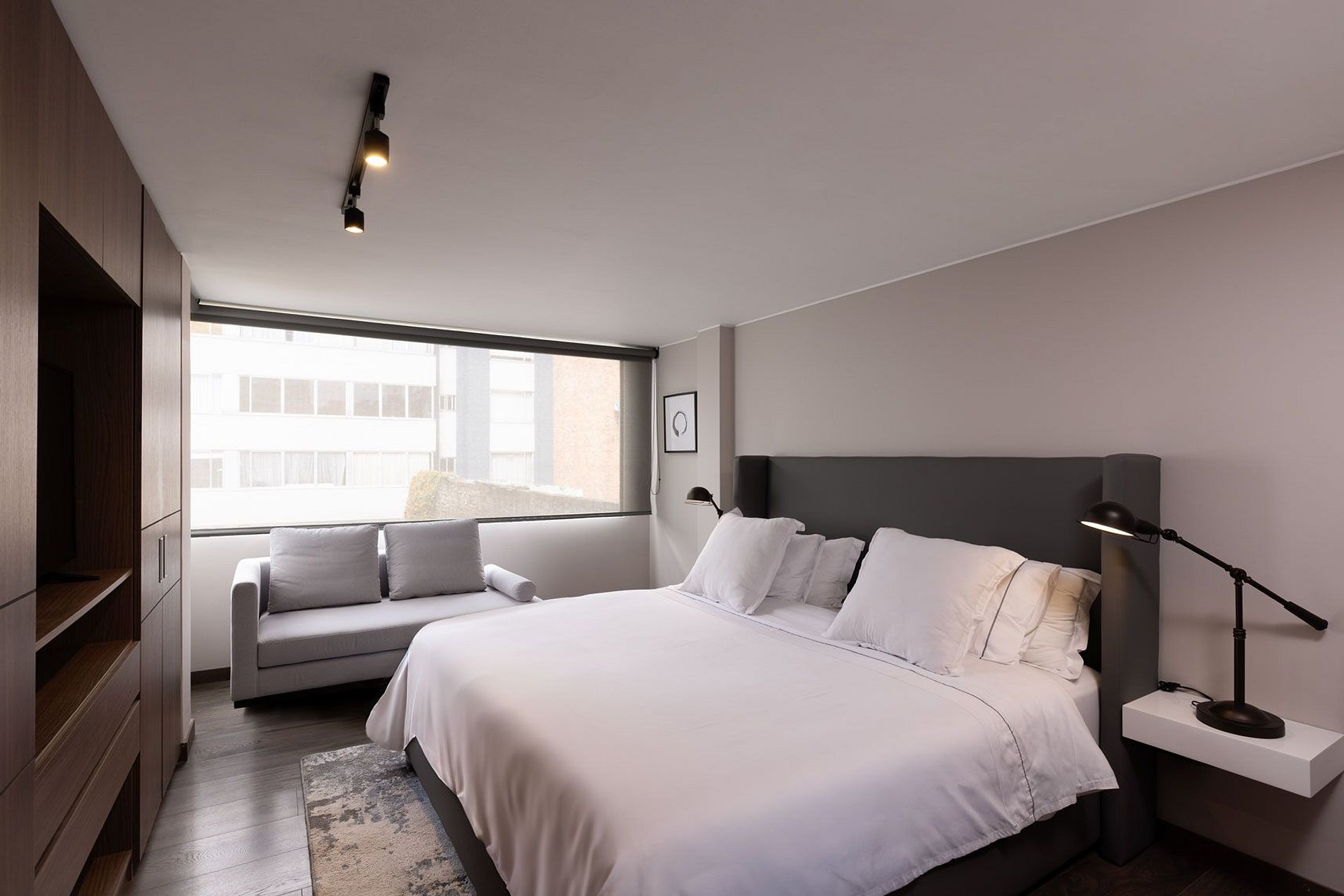 Trendy and spacious design in an upcoming neighborhood. A luxury urban spot, close to hip bars and restaurants, ideal for those who want to experience Bogotá nigthlife and gastronomic offers. Amazing modern interior design and spaces to suit your needs.